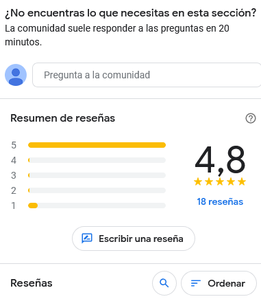 Poco mas abajo estará el acceso a las reseñas correspondientes a la comunidad e información adicional relevante.