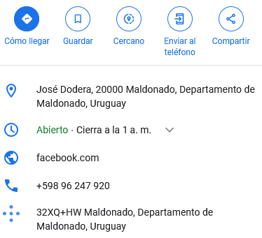 Al momento de hacer clic en la ficha de información, vas a toparte con unos cuantos botones que te pueden facilitar como llegar, locales o negocios cercanos, si deseas enviar por teléfono y más: