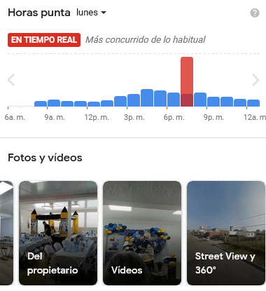 Si continúas bajando, te vas a encontrar con la Hora Punta, el cual se presenta como un gráfico que te va a dar estadísticas de aquellos días y horas concurridos por las personas.