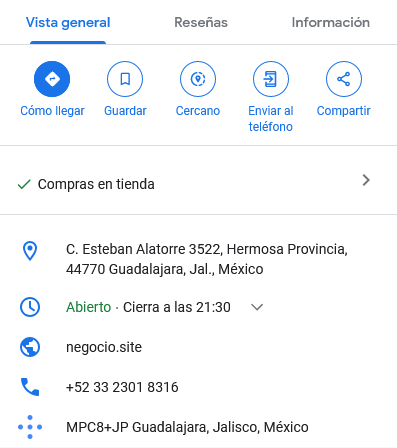 - URL o dirección web (Opcional) – Es posible encontrar las redes sociales como Instagram o Facebook.