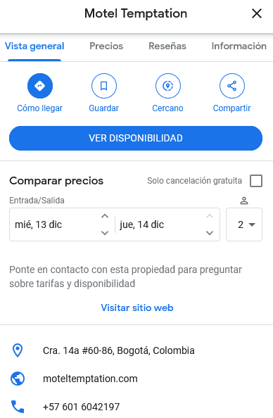Con la ayuda de Google Maps vas a poder buscar con facilidad y realizar los análisis de cada uno, esto debido a que ofrece una variedad de información útil y al instante para que en solo segundos conozcas un listado de moteles a los que puedes acceder sin inconvenientes.
