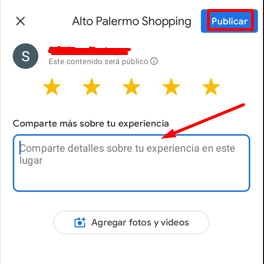 Después de tocar la calificación correspondiente se nos habilita la opción de escribir el comentario que deseemos, justo abajo del texto que dice Comparte más sobre tu experiencia. Una vez que tengamos escrita la reseña, solo debemos tocar el botón de Publicar que se encuentra en el extremo superior derecho de la pantalla.