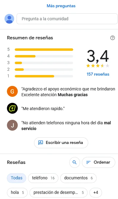 A diferencia de las secciones anteriores (que tiene participación de visitantes pero en mayor medida los datos han sido añadidos por administradores de la ficha) accederemos a la pestaña de ‘Comunidad’ en la que los aportes de personas externas que conocen el ambiente son fundamentales permitiendo plasmar las experiencias que han tenido. Este apartado se puede desarrollar las consultas que han dejado junto a las respectivas respuestas (y la chance de dejar las dudas que no hemos resuelto con toda la info antecesora), corroborar mediante la lectura de opiniones el por que las calificaciones que ha obtenido y -por ultimo- organizar las reseñas por las mas actualizadas o las mas completas sumado a la nuble de palabras clave que han sido reiteradas y en la cual se hace mas hincapié.