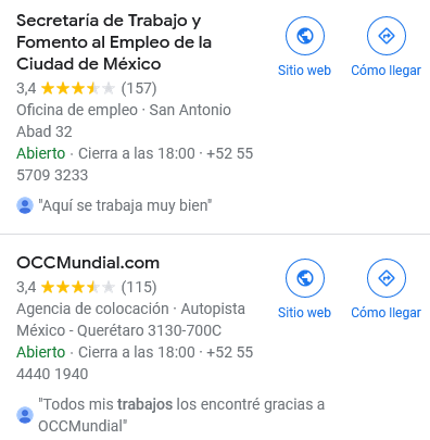 Al finalizar el tutorial no solo visualizaras las agencias laborales y potenciales ofertas de trabajo existentes en la ubicación que gustes realizar la búsqueda si no que accederás a la info que cada una de estas proporciona la cual es relevante al momento de aplicar. Ademas tendrás acceso a las opiniones de otras personas, la ponderación promedio que tiene, conocerás preguntas dejadas por individuos interesados, las respectivas respuestas y otros datos relevantes para este tema tan delicado enfocado en conseguir trabajo.